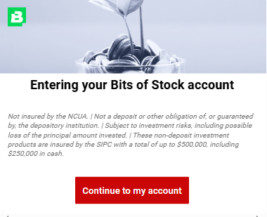 After clicking on “Stock Rewards,” you will see this screen – Click on the “Continue to my account” button.
